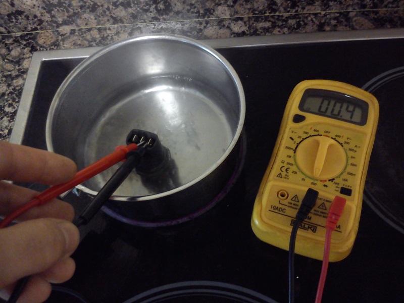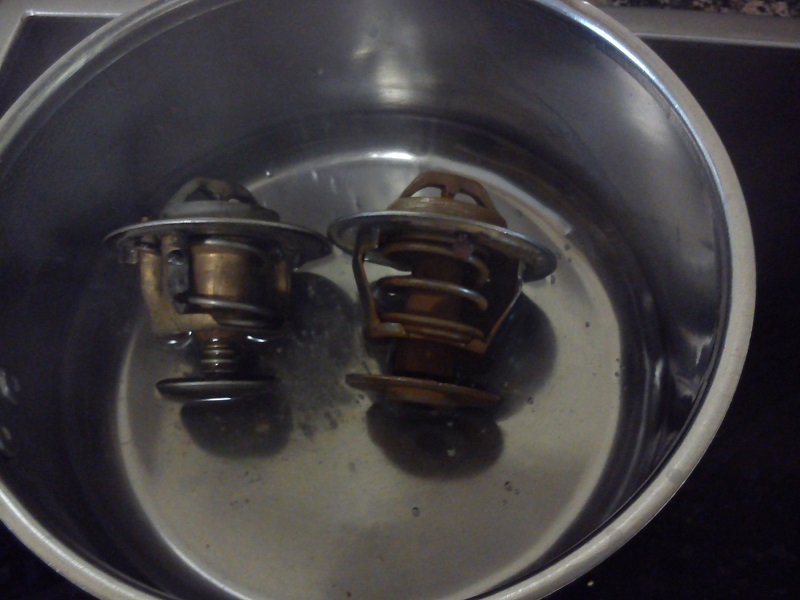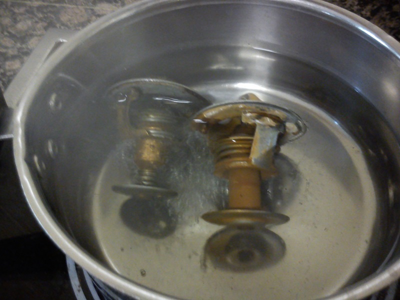 El termostato ya lo había cambiado, no obstante comprobé el viejo, para saber si estaba gripado en cerrado. El método es relativamente sencillo:
