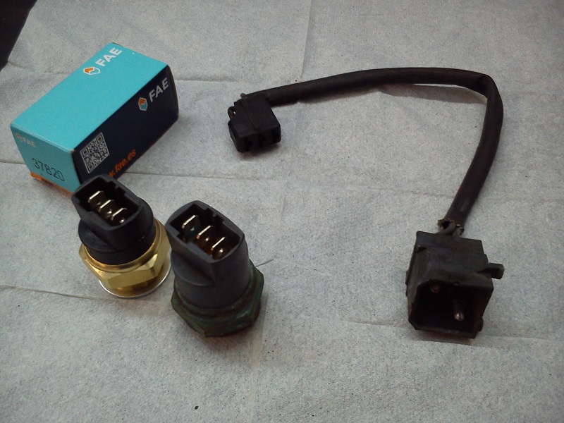 Con la bomba cambiada, refrigerante nuevo, etc, lo siguiente fué comprobar el electroventilador. Arrancaba, es cierto, pero cuando la temperatura era muy elevada. En ese punto, toca sospechar del termopar o del sensor. Uno puede estar activando el electroventilador demasiado tarde (bueno, demasiado caliente) y el otro puede estar marcando demasiada temperatura cuando el refrigerante no está, en realidad, tan caliente (raro, normalmente cuando se estropean los sensores de Tª lo que hacen es marcar de menos, no de mas, es algo que he visto bastantes 9000's).